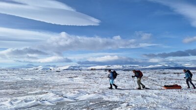 Met sneeuwschoenen en expeditieslee op pad in Noorwegen